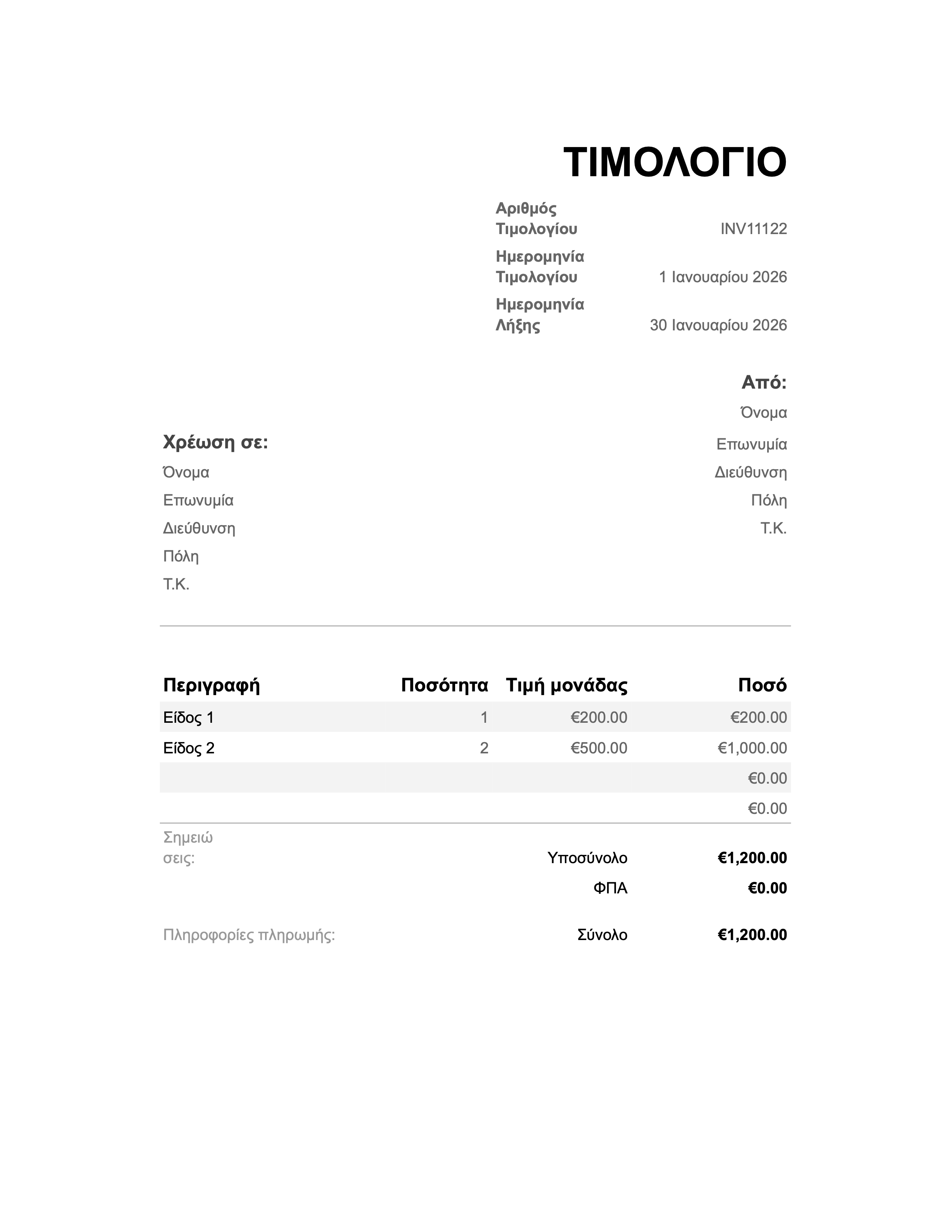 Πρότυπο τιμολογίου Ελλάδας & δωρεάν δείγμα λήψης