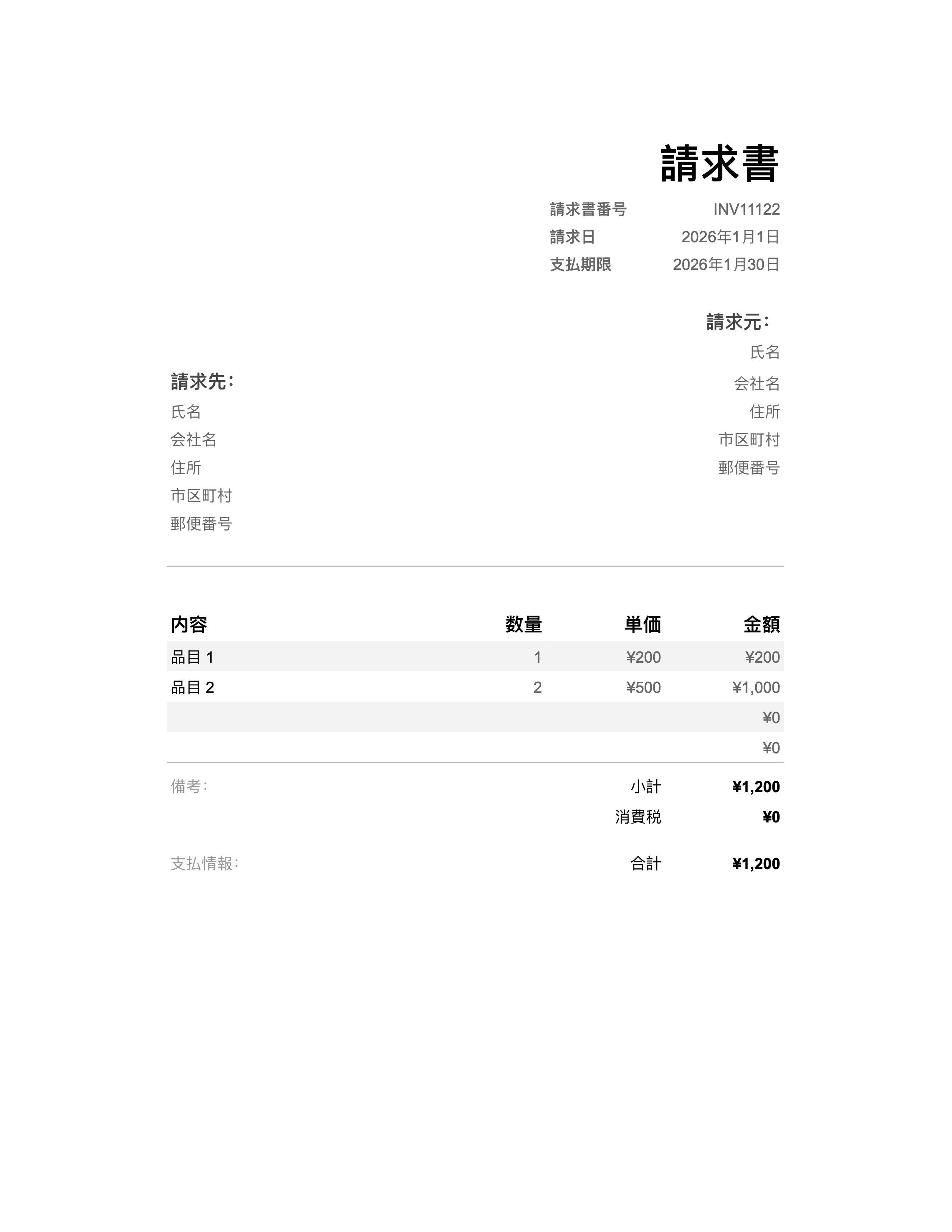 日本請求書テンプレート&無料サンプル