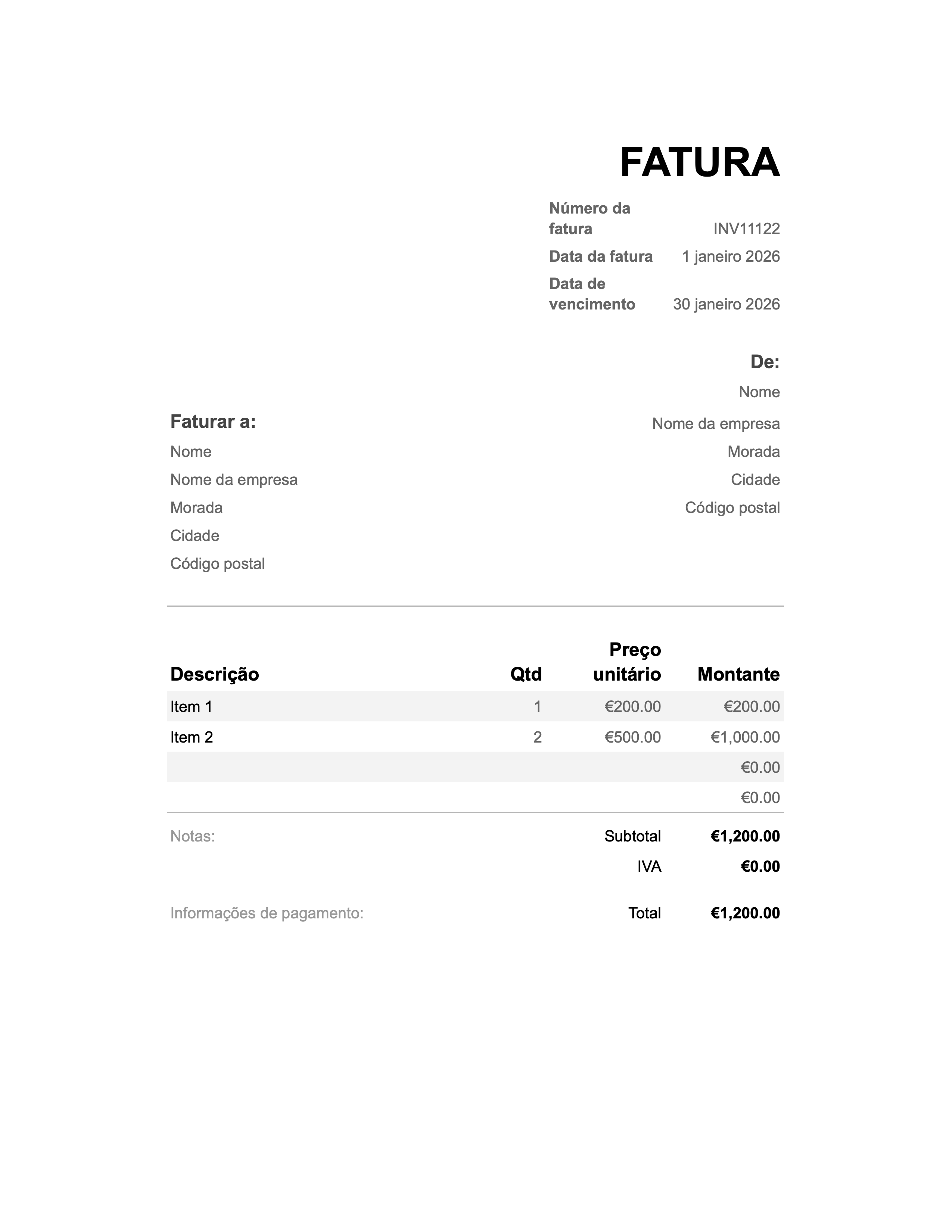 Modelos de fatura gratuitos para Portugal